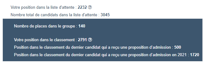 Les kheys il vous est déjà arrivé d'arriver de recevoir une proposition d'admission alors que vous aviez environ 350 places de plus que le dernier admis?