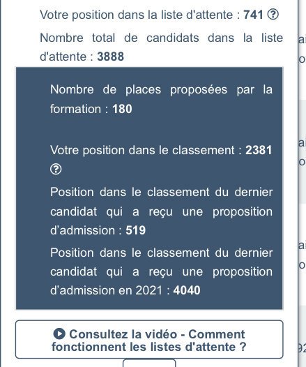 en vrai lors de la phase complementaire, la plupart des établissements qui t'acceptent sont rarement en lien avec ton choix de parcours. ils ont été pris dans des établissement bof bof et ont jouer sur le fait qu'à la rentrée certaines personnes répondaient aux abonnés absent ou se sont juste désisté.