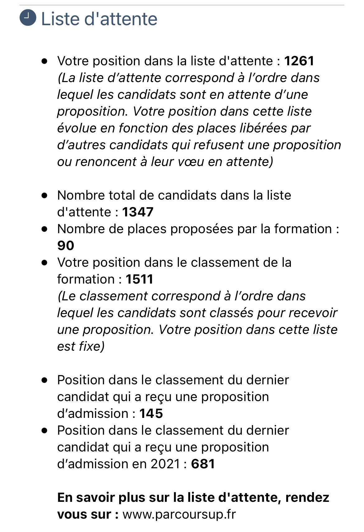 J'ai gagné un peu moins de 120 places avec les gens en file d'attente qui se désistent mais le dernier pris cette année n'a pas bougé depuis le début![]()