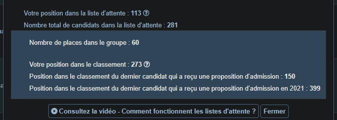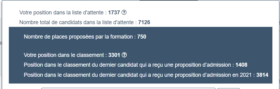 Je suis 300eme dans le classement fixe. J'espère être là bas parce que je sens que avoir Fontainebleau va être compliqué. Pour l'instant j'ai accepté une prépa PCSI a Montreuil en guise de sécurité