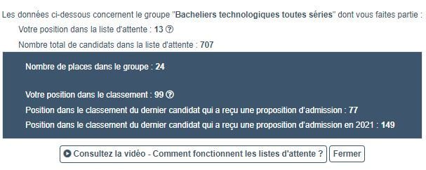 Ce n'est pas pour être méchant mais certains ici ont un meilleur classement que toi (liste d'attente; classement par rapport au dernier admis 2021) et stuck petit à petit voir complètement pour certains/es, tes chances d'être pris sont vraiment nulle comparé a eux khey