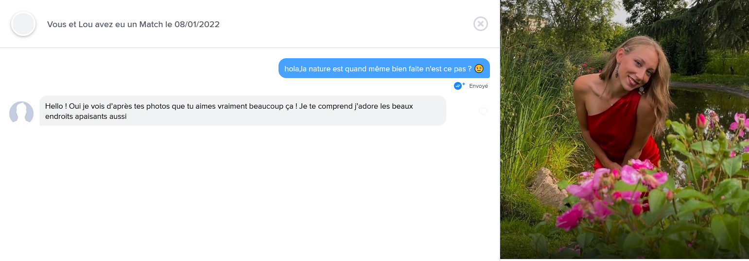 ——-> « Coucou je trouve le paysage très joli, et toi aussi tu es très belle <3 »
