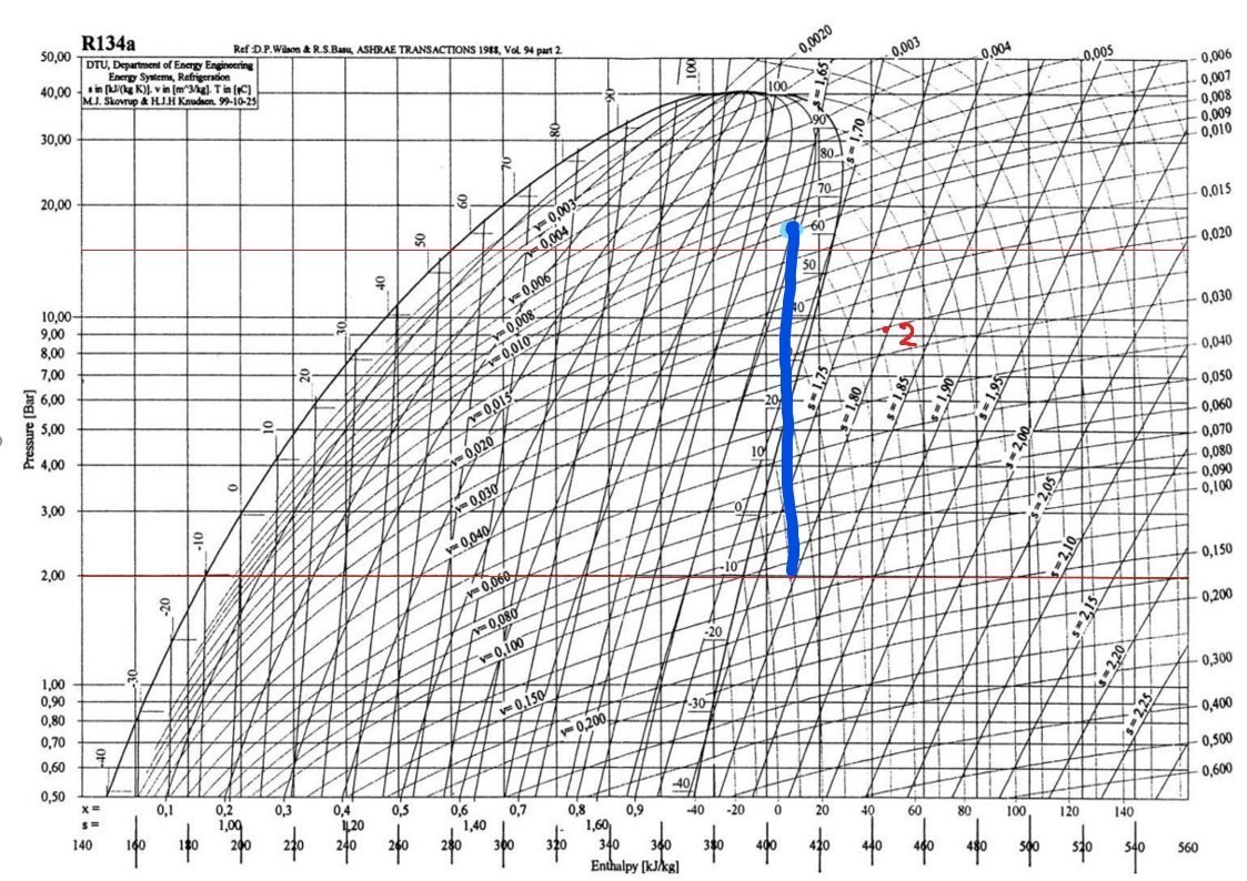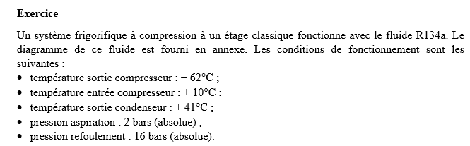 Oui je sais khey mais le truc c'est qu'en fait là je bloque sur la compression. Comme tu le vois sur mon image, j'ai démarré à 10°C et en remontant et en suivant l'isentropie, j'arrive à 62°C mais j'atteins pas les 16 bars c'est ça que je comprends pas