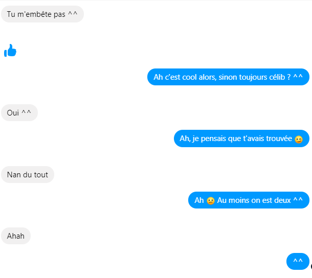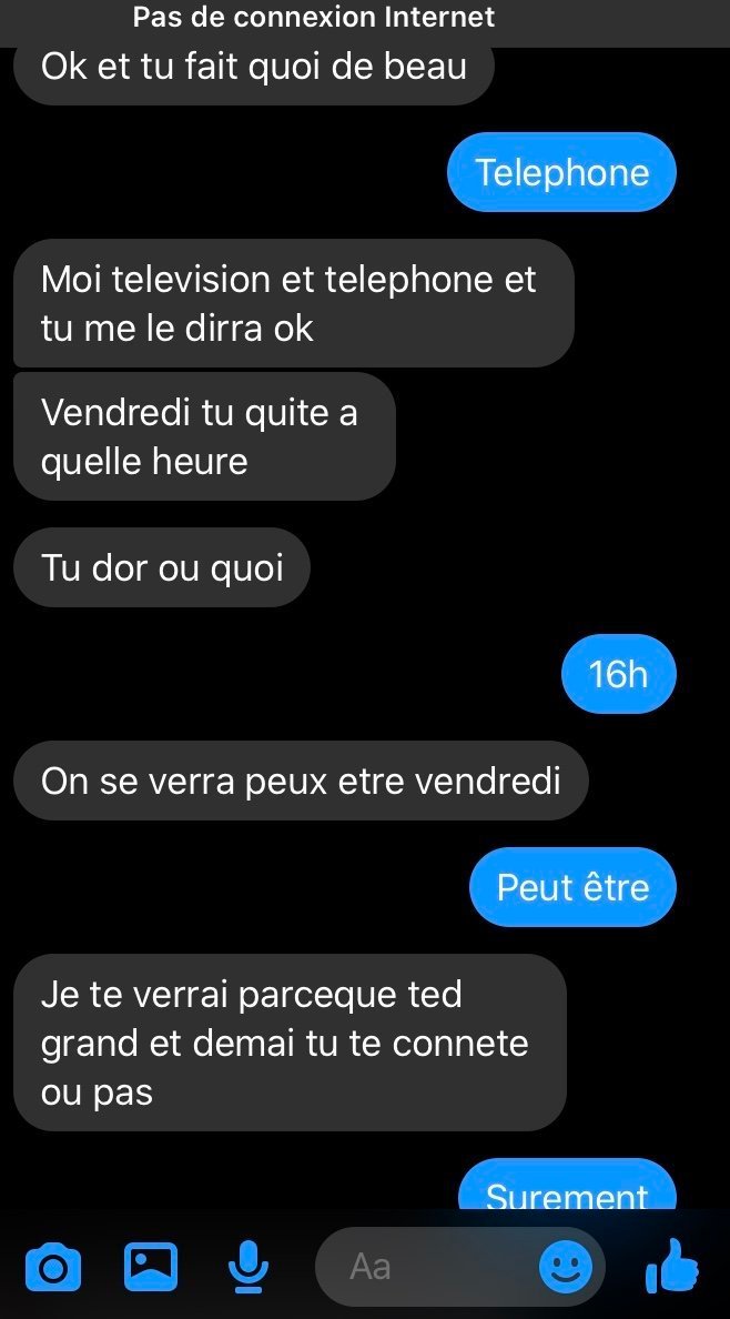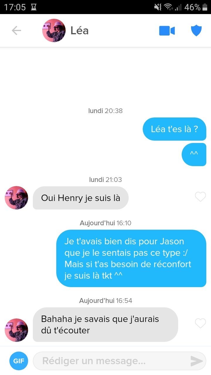 20h37 : Léa le prend pas mal si je t'ai en fond d'écran sur mon téléphone mais je sens que tu es la femme de ma vie
