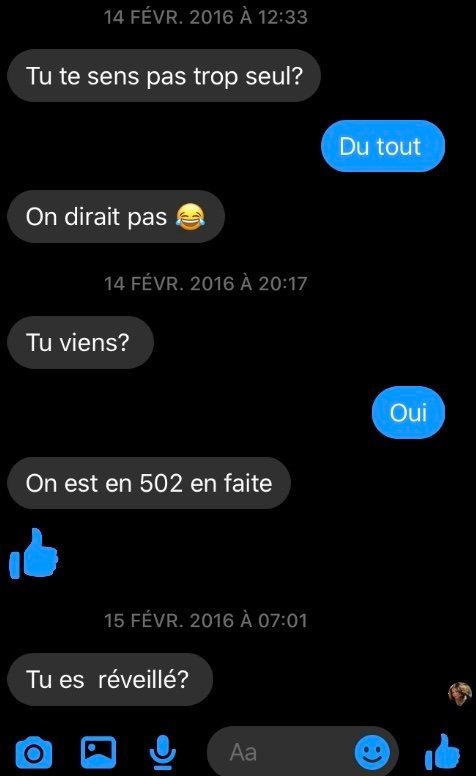 [Envoyé le 2 juillet 2017 à 20h17] Léa t'es là ?