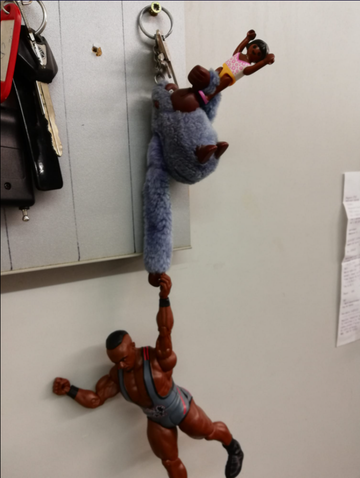 Alors il y a le nwaw musclé en bas, la fillette nwaw, et un chien nwaw dans le truc gris.