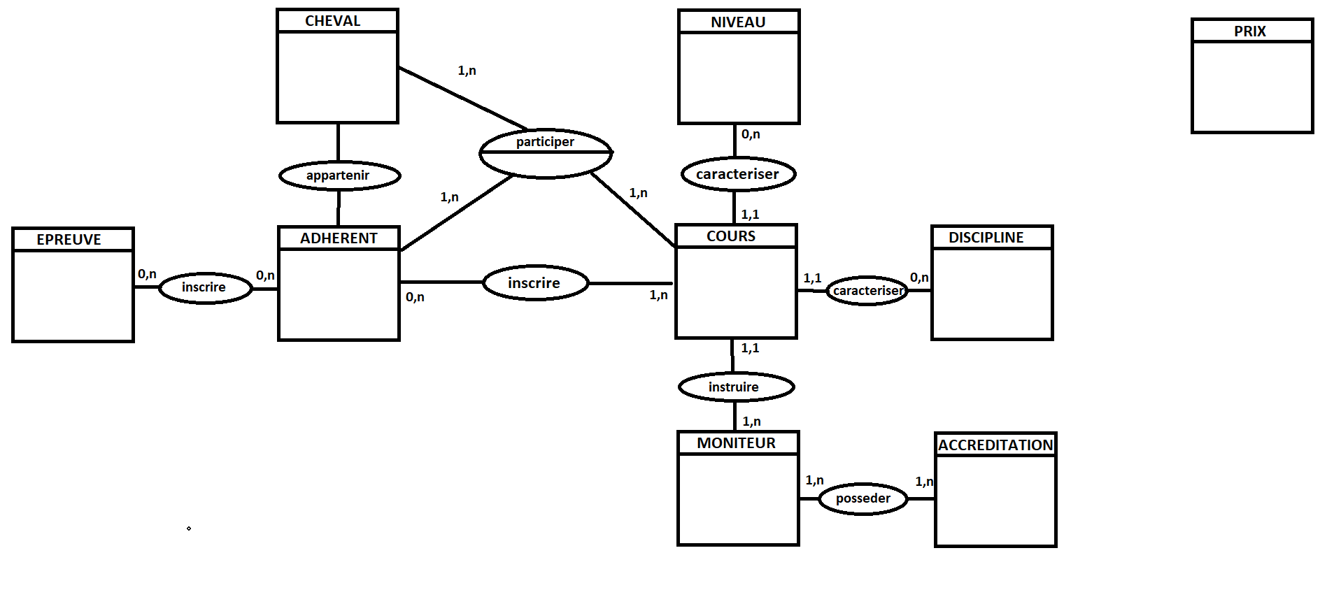 ADHERENT(0,n) _______(0,1)CHEVALIl manque un lien entre discipline et moniteur non ?