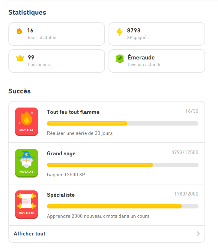 Je viens de faire mes 130 jours de streak, 230 couronnes, 15000 XP. En 4 mois.