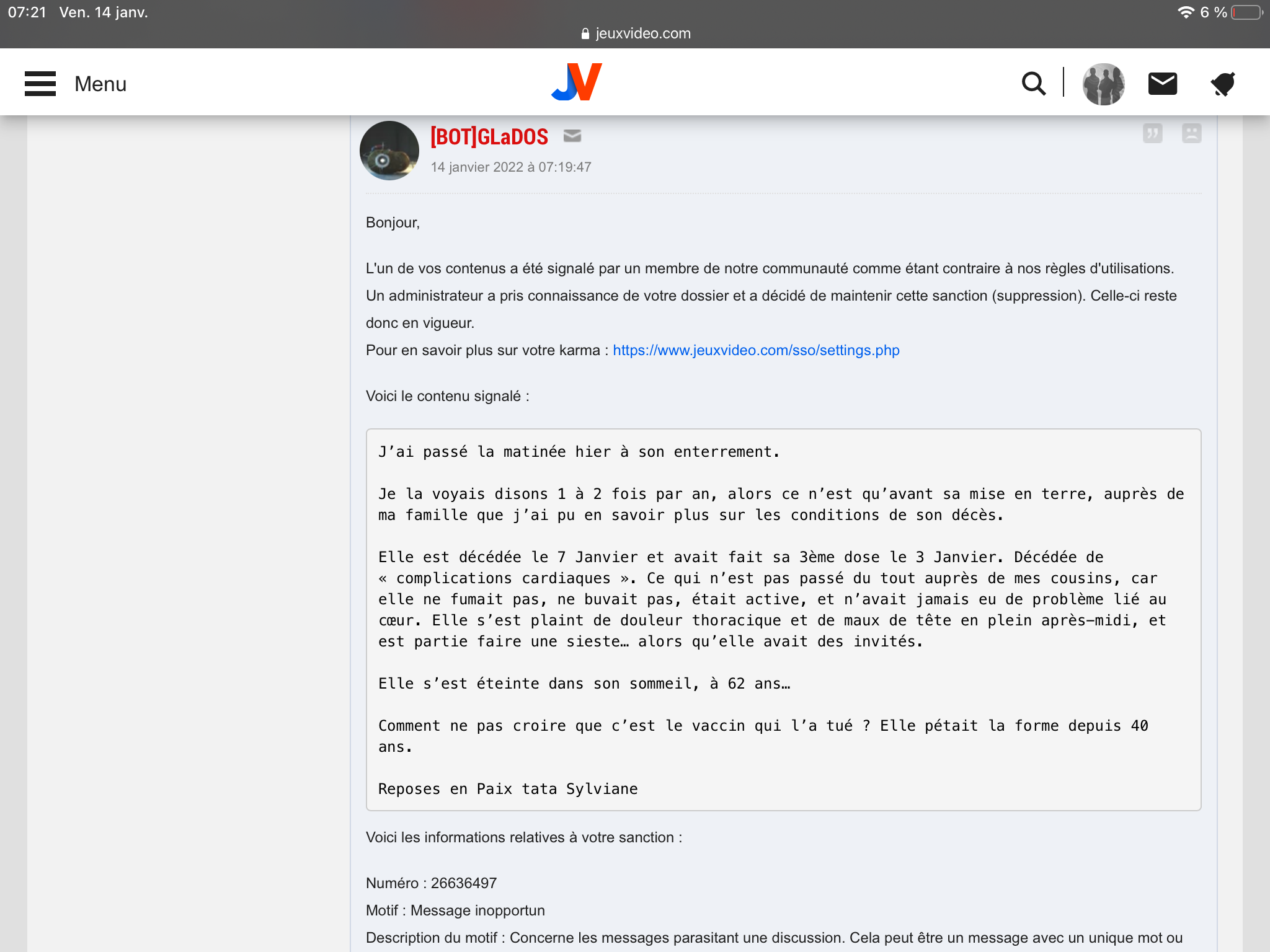 mon sondage d'hier s'est fait ddb pour message inopportun aussi, pourtant il etait intéressant et tous les participants cordiaux