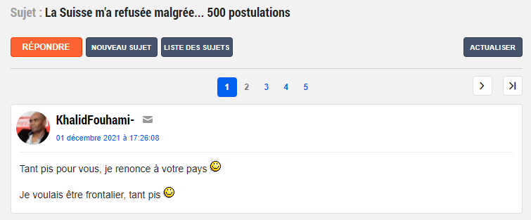 Ce déchêt de KhalidFouhami et son obsession pour la SuisseC'est exactement ce que je me suis dit en cliquant sur ce topic.