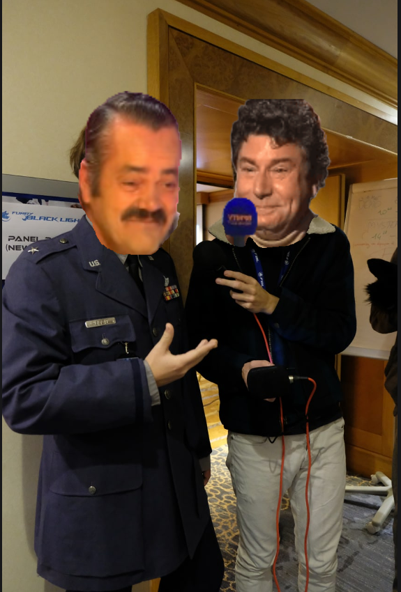 Tu vois d’entré que ce journaliste éco+ veut te piéger sur l’uniforme que tu portes en convention en mode « que viens faire un uniforme militaire en convention furry ? »