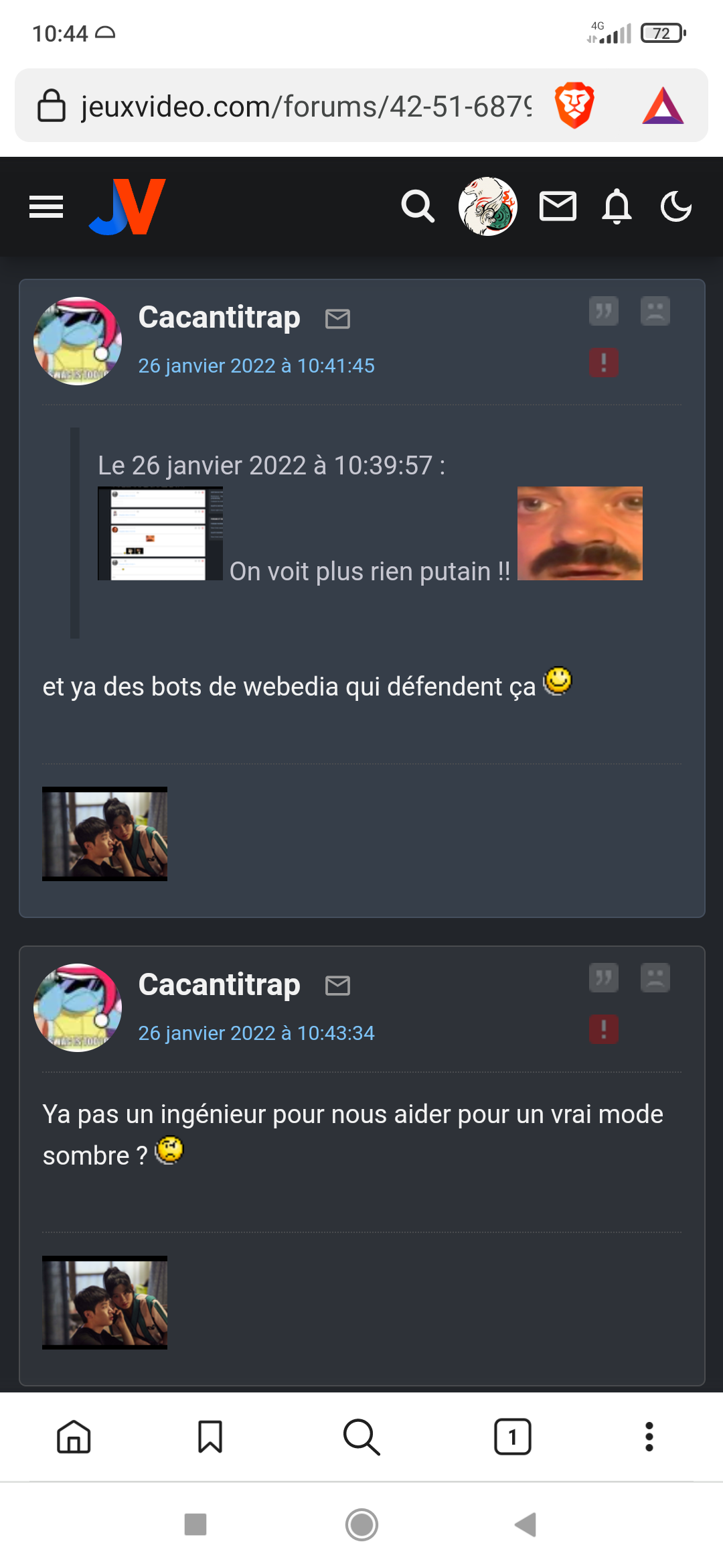 En plus j'avais mis un script pour avoir JVC en mode nuit et c'était 1000x mieux que cette bouse infâme