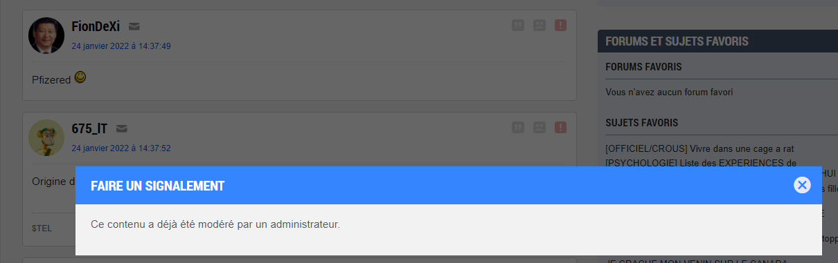 Tiens, tiens, tiens...Je ne dirai rien, j'ai vu que beaucoup de DDB ont été lancées en page 1 (même si la plupart ont déjà le contenu modéré par un admin).