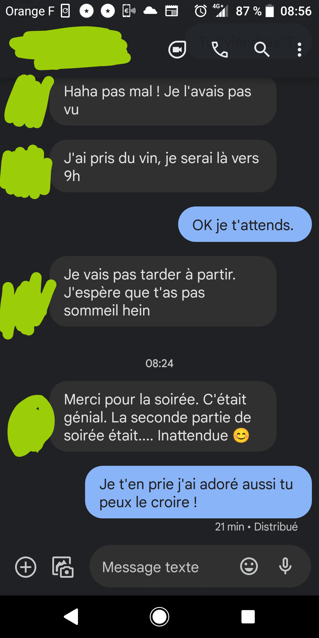 La encore, la conversation glisse souvent avec des gros sous entendus sexuels.parfois ça vient de moi, mais souvent ça vient d'elle.