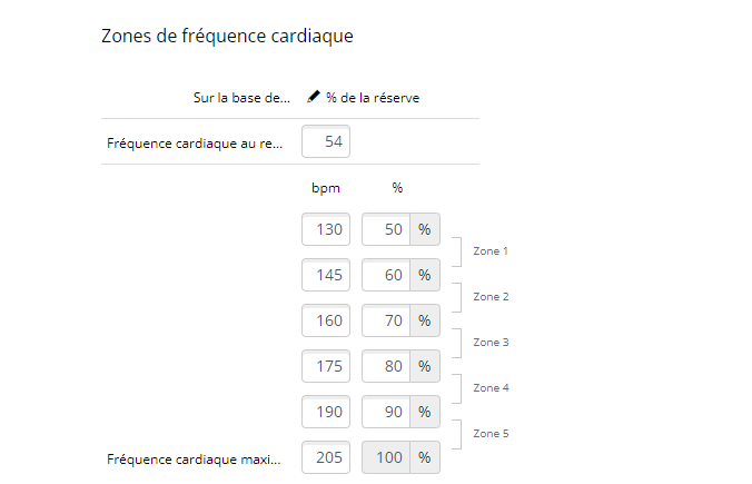 Une fois que tu as ces deux valeurs tu peux les rentrer dans les paramètres de ta garmin et elle te donnera les zones en conséquence.