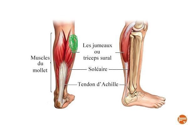La partie en vert, ça m'est arrivé en courant dans une descente, peut être un mauvais appui, je me suis arrêté quelques secondes, j'ai pu courir à nouveau avec une légère douleur jusqu'à chez moi.