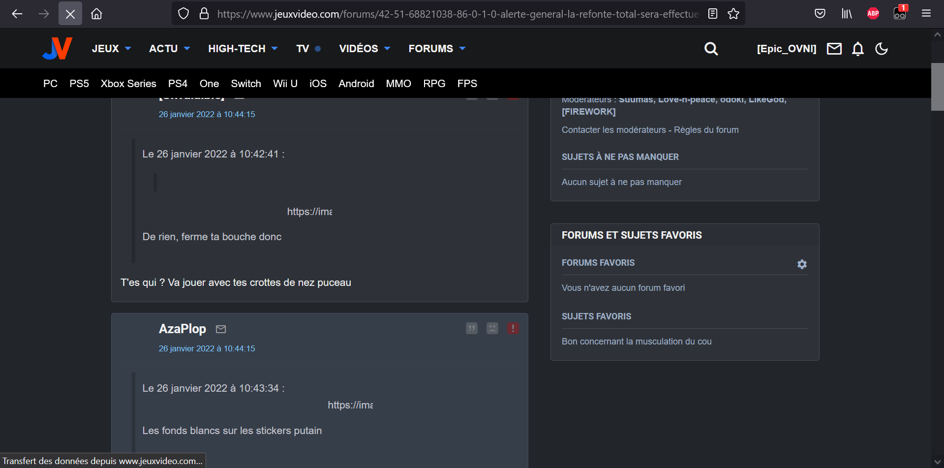 Aussi, si on actualise une page sur un topic en mode sombre on peut brièvement voir les cases des messages dans, ce que je pense être, la couleur où ils sont sensé être sans bug :
