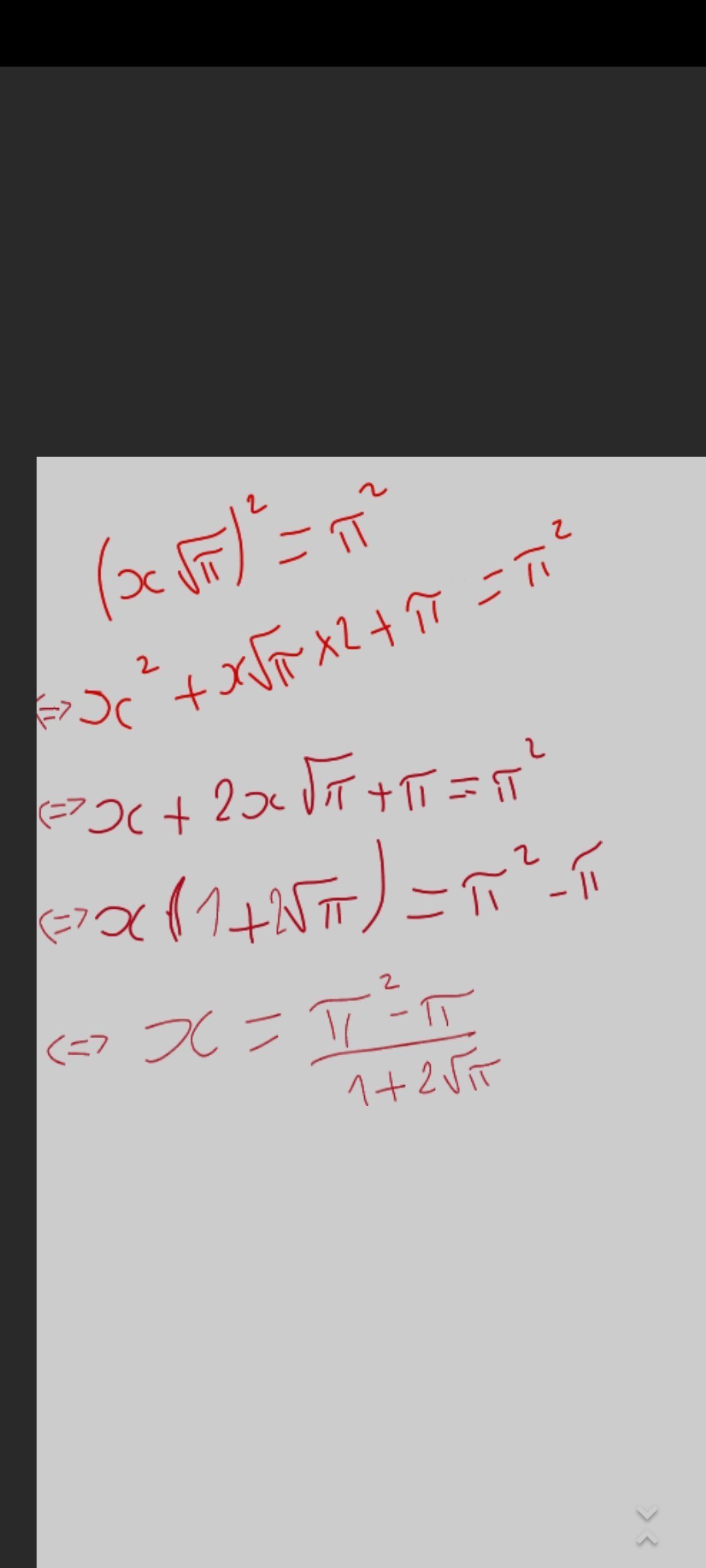 L'opax ce qi négatif qui se trompe sur la bonne réponse AHIbah c'est x= i√π