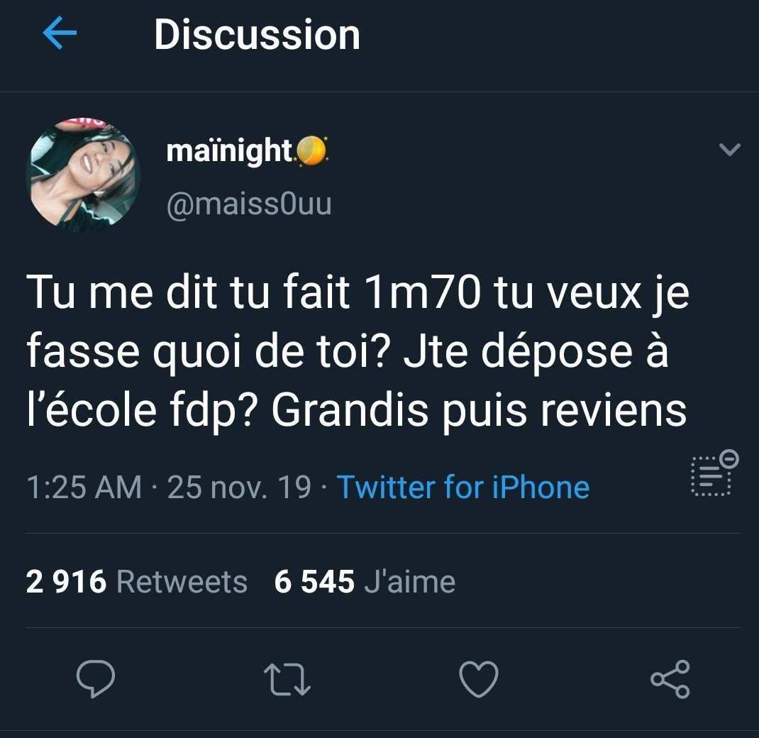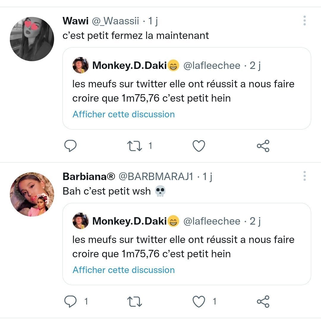 comment on peut te prendre au sérieux tu fais mon poids avec 2 tête de moins que moiLe 24 janvier 2022 à 19:47:22 :