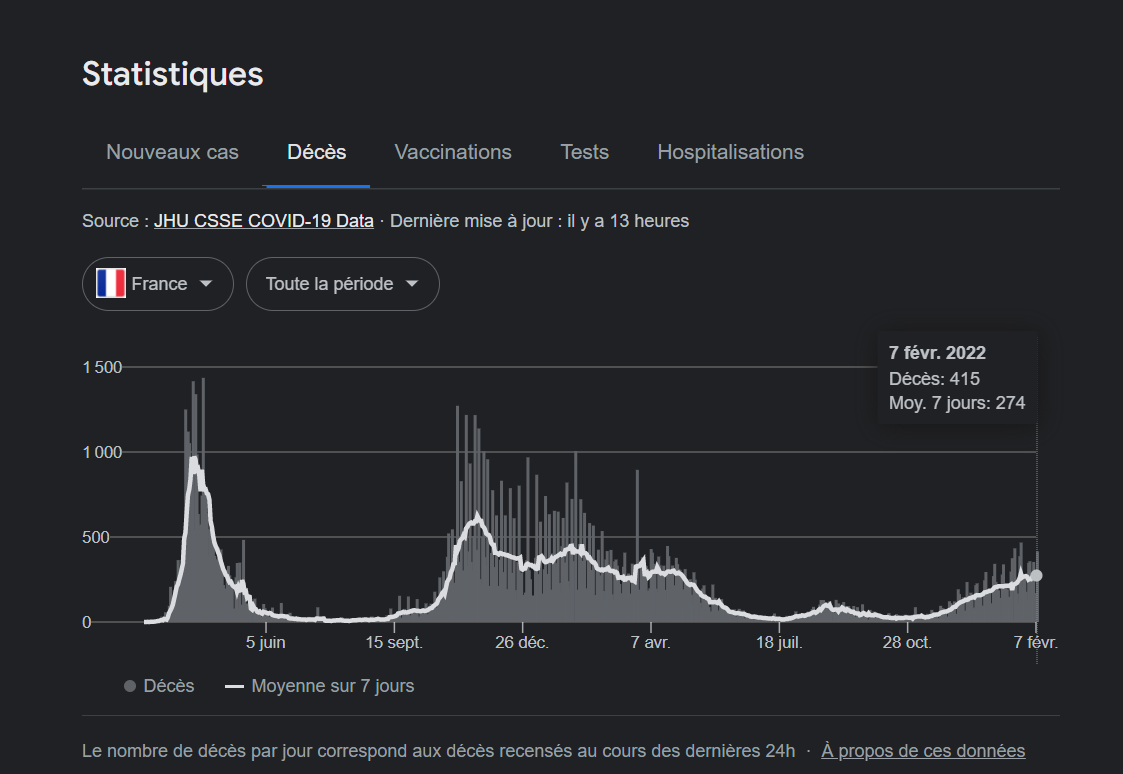 Le 08 février 2022 à 14:04:04 : Leur façon de compter les morts est la même ? Par exemple quelqu'un qui meurt d'un cancer des poumons, testé positif au covid, sera mort du covid ?