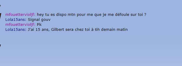 Des onze ans mon dieu le traumatisme... Moi je faisais des fakes de fille chaudasse avec un pote quand j'étais ado avec des dialogues de ce style