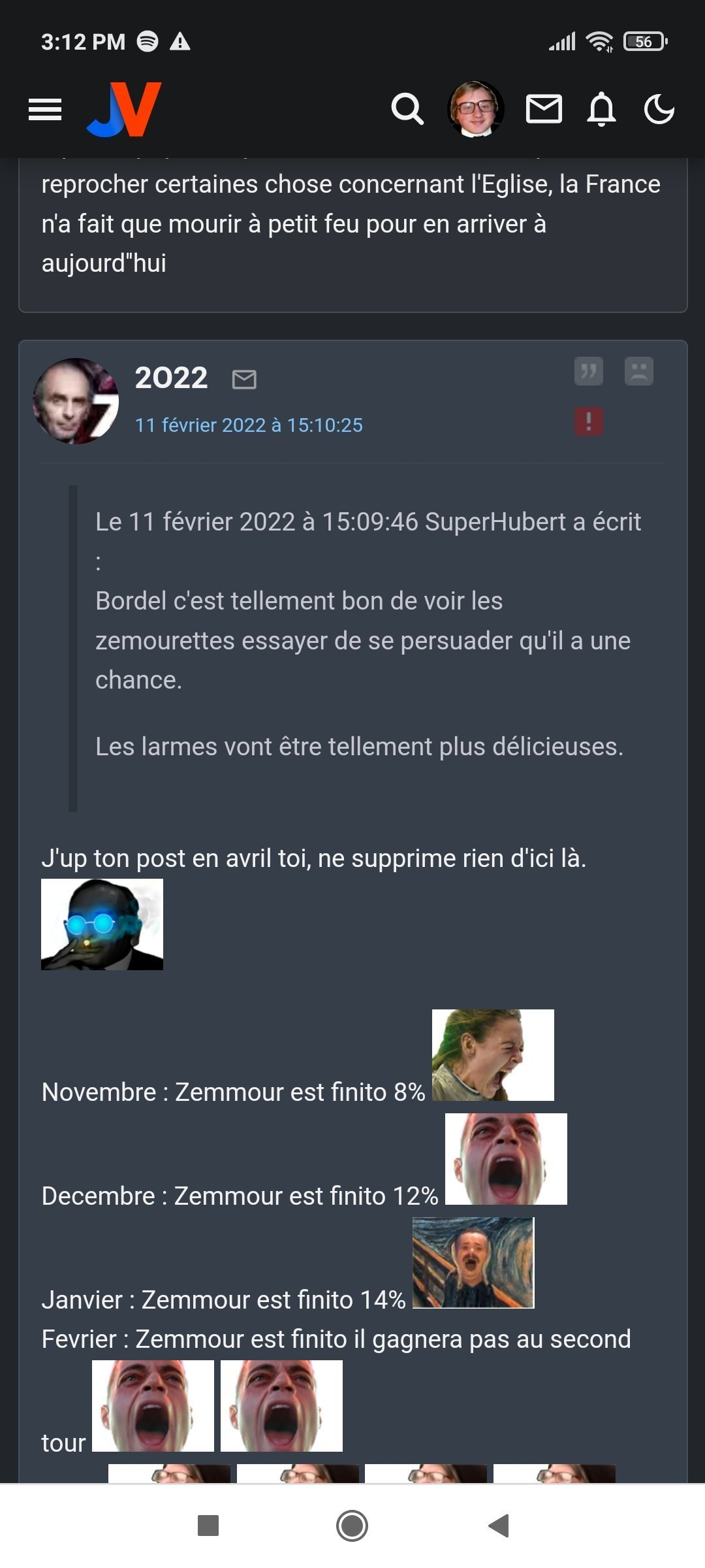 Fevrier : Zemmour est finito il gagnera pas au second tour![]()