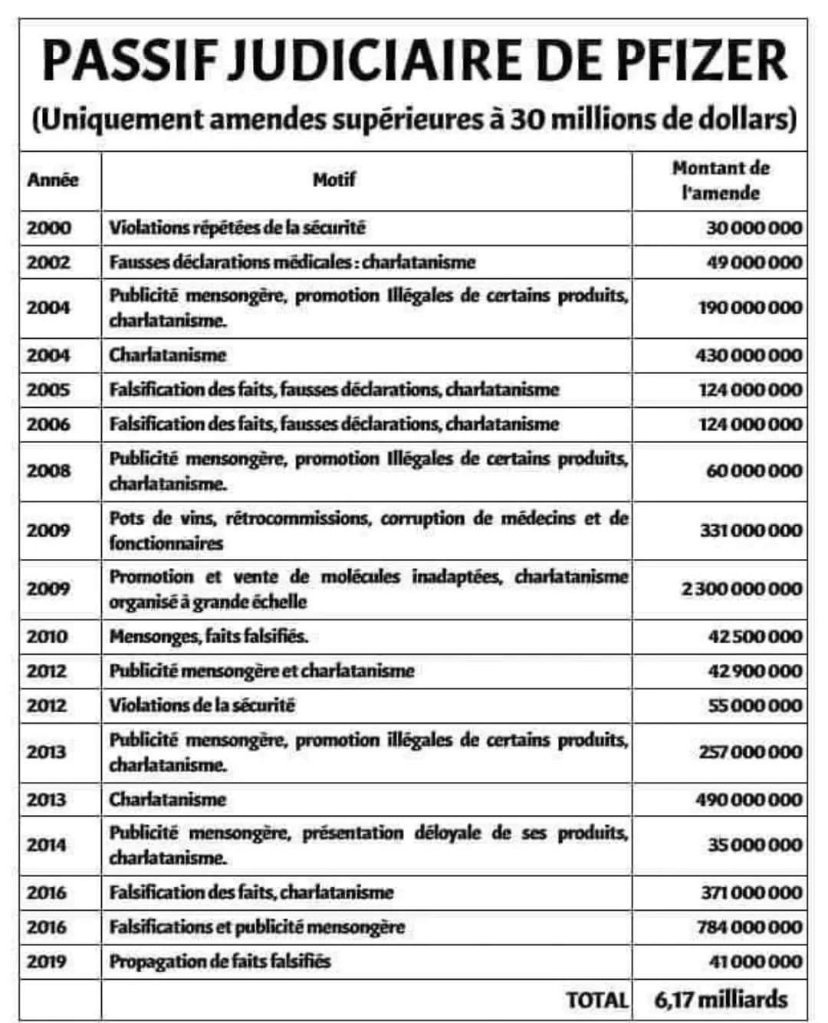 On vous parle pas de complot mais de fraudes, mensonges, falsifications, charlatanisme, et Pfizer a déjà été condamné des dizaines de fois pour tout ça.