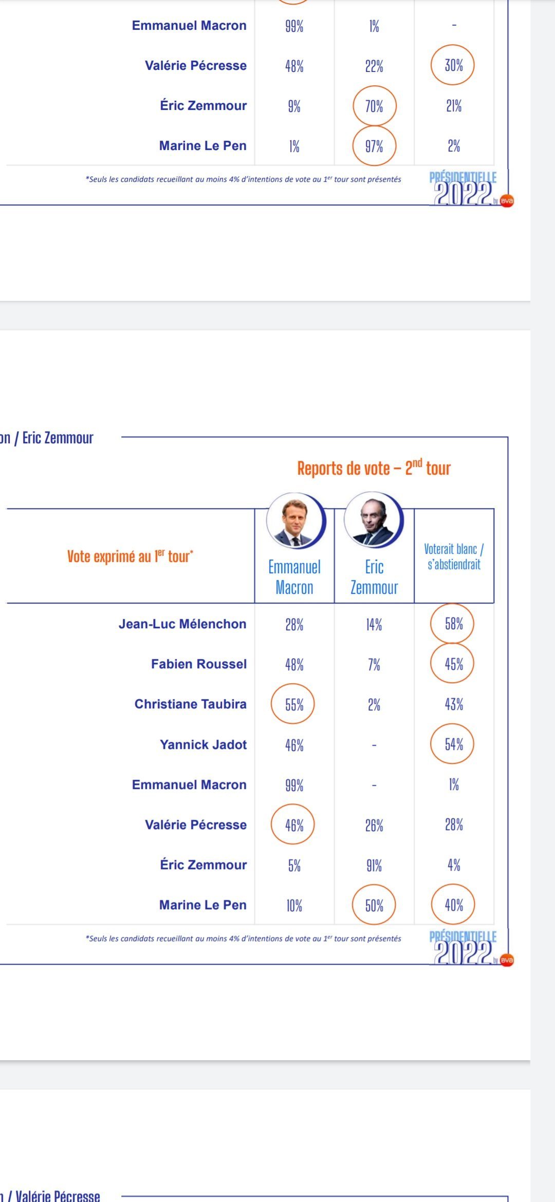 Melenchon est encore assez loin derrière et Marine baisse légèrement. Pécresse s'effondre et des LR iront chez Z.Tu veux dire chez macron pour au moins 50% d'entre eux oui.