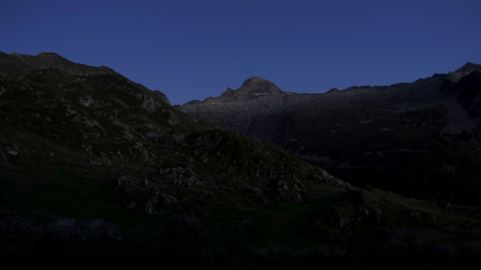 Le bleu d'une journée mourante tombe sur le Vallier et lui donne un aspect étrange, il devient fascinant. Je le regarde si longtemps qu'il disparait presque, à peine illuminé par une voie lactée que n'entache aucune lumière artificielle. Il n'y a pas le moindre village à 10km à la ronde