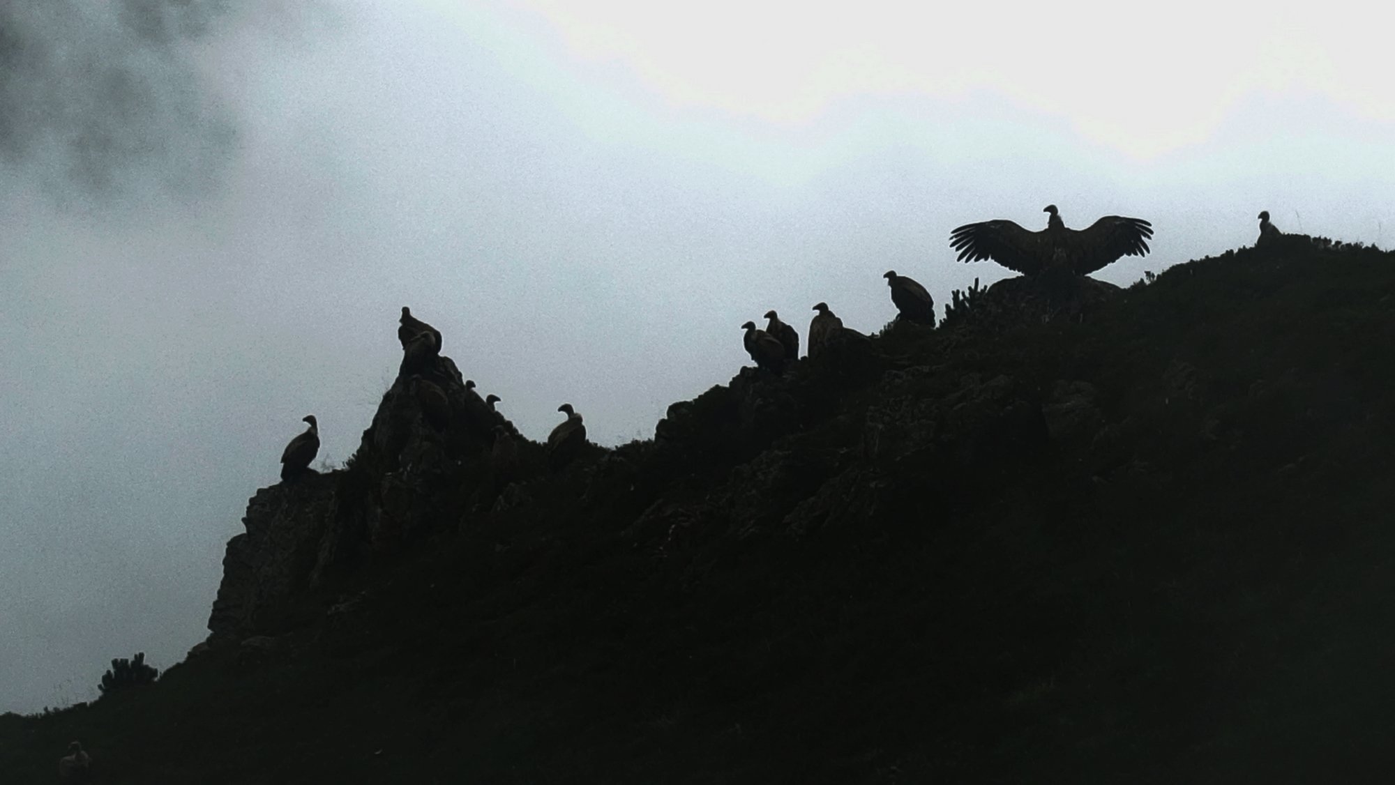 Le troupeau nous réveille de bon matin, mais on décide de prendre notre temps après la journée éprouvante d'hier. Nous ne quittons la cabane qu'après 10 heures et une bonne matinée à se régénérer. Nous marchons à peine une heure, et une nuée de vautours se découvre derrière un flanc rocailleux, c'est un véritable spectacle ! Ils sont partout !