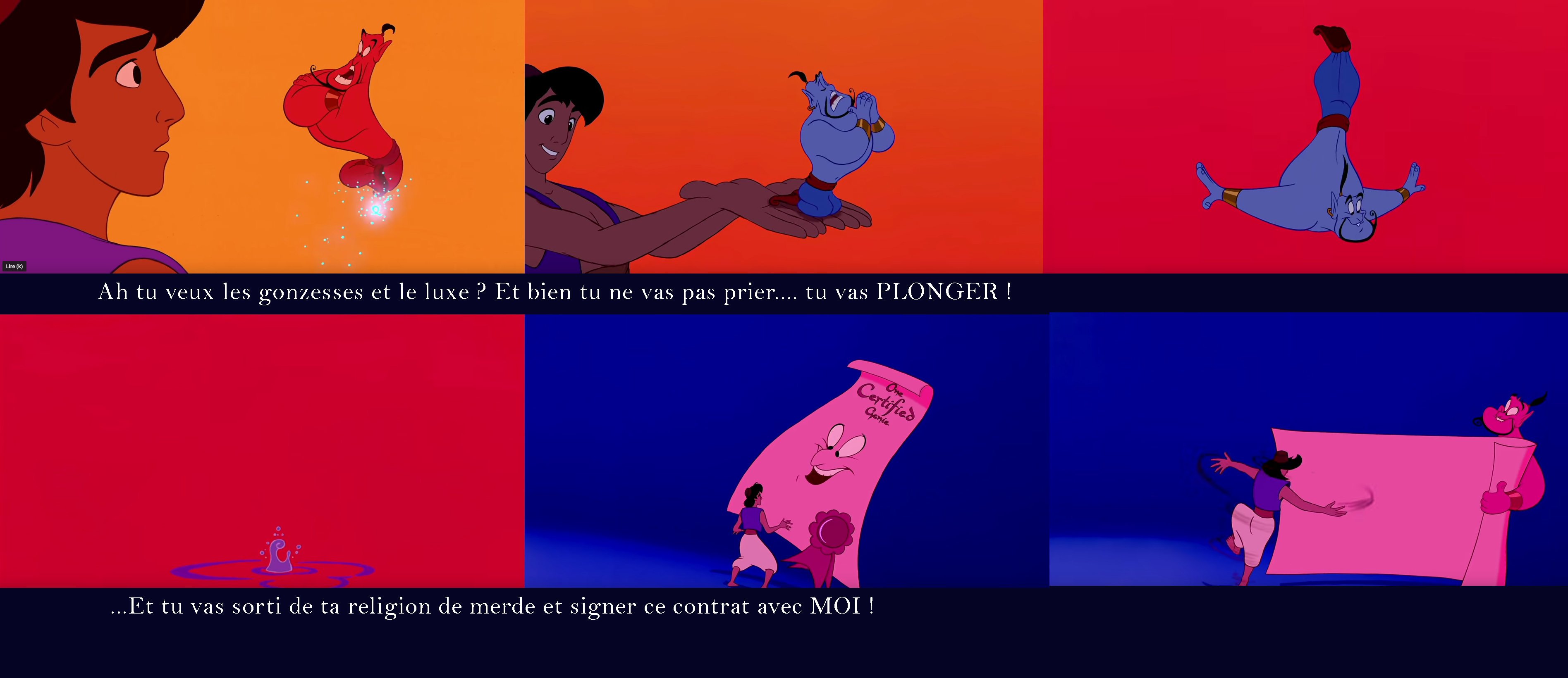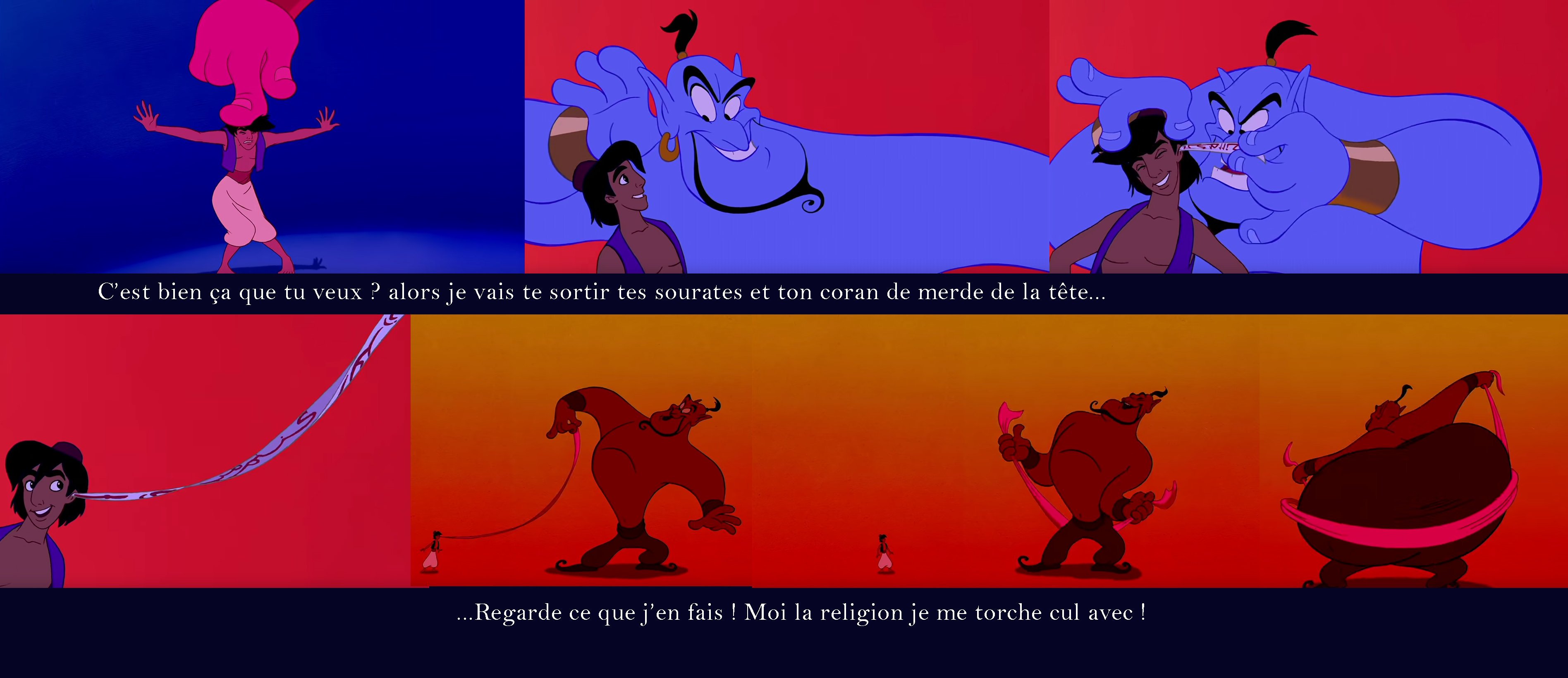 Le génie démarre en utilisant la peur d'Aladdin.