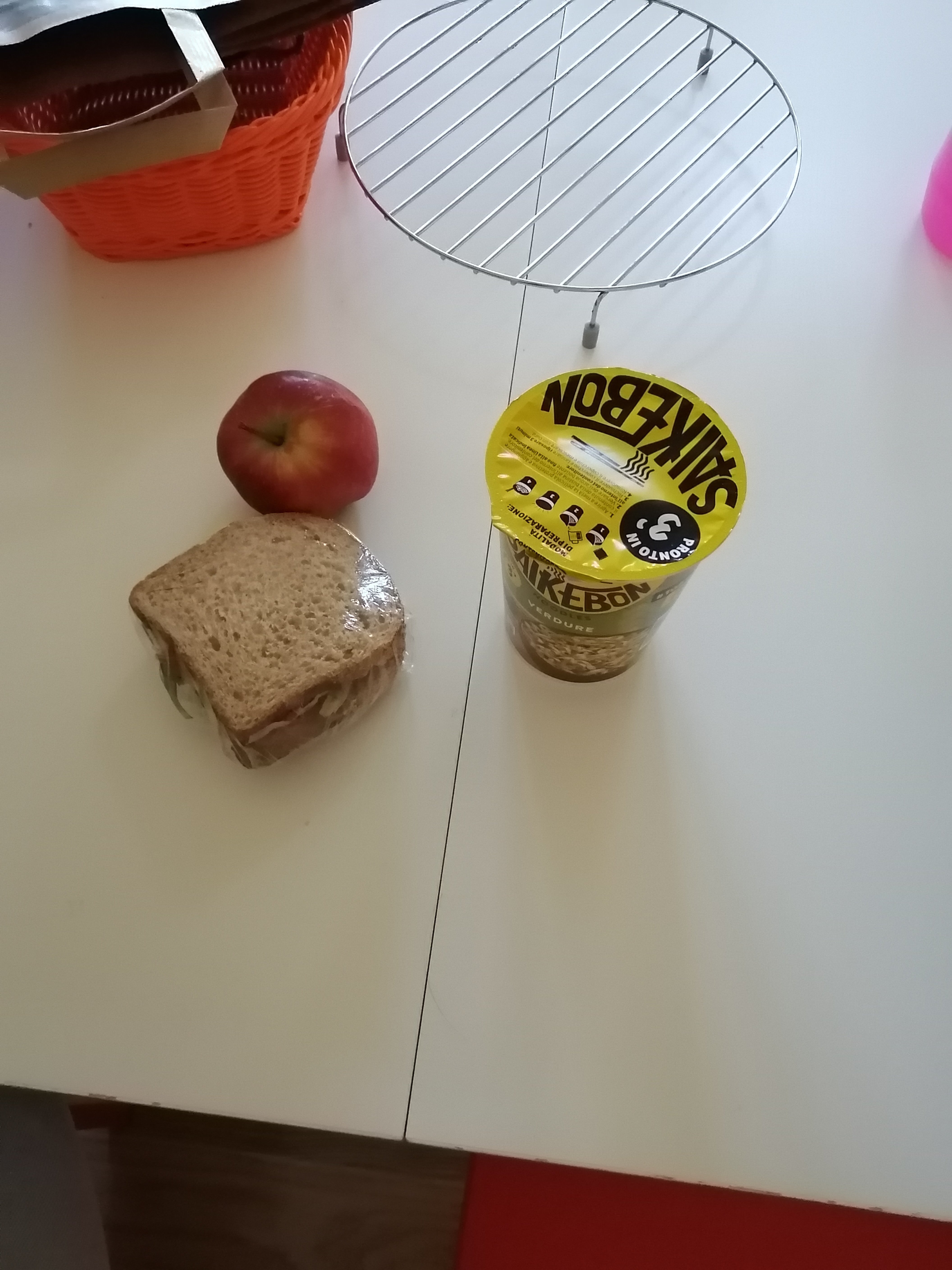 En entrée un somptueux Sandwich au pain de mie complet avec sa salade fraîche de carrefour agrémenté de délicieux jambon sec Pour le plat, de ravissantes nouilles asiatiques accompagnées d'un mélange d'épices vegetariennes Et enfin pour finir, en dessert un sublime fruit de saison