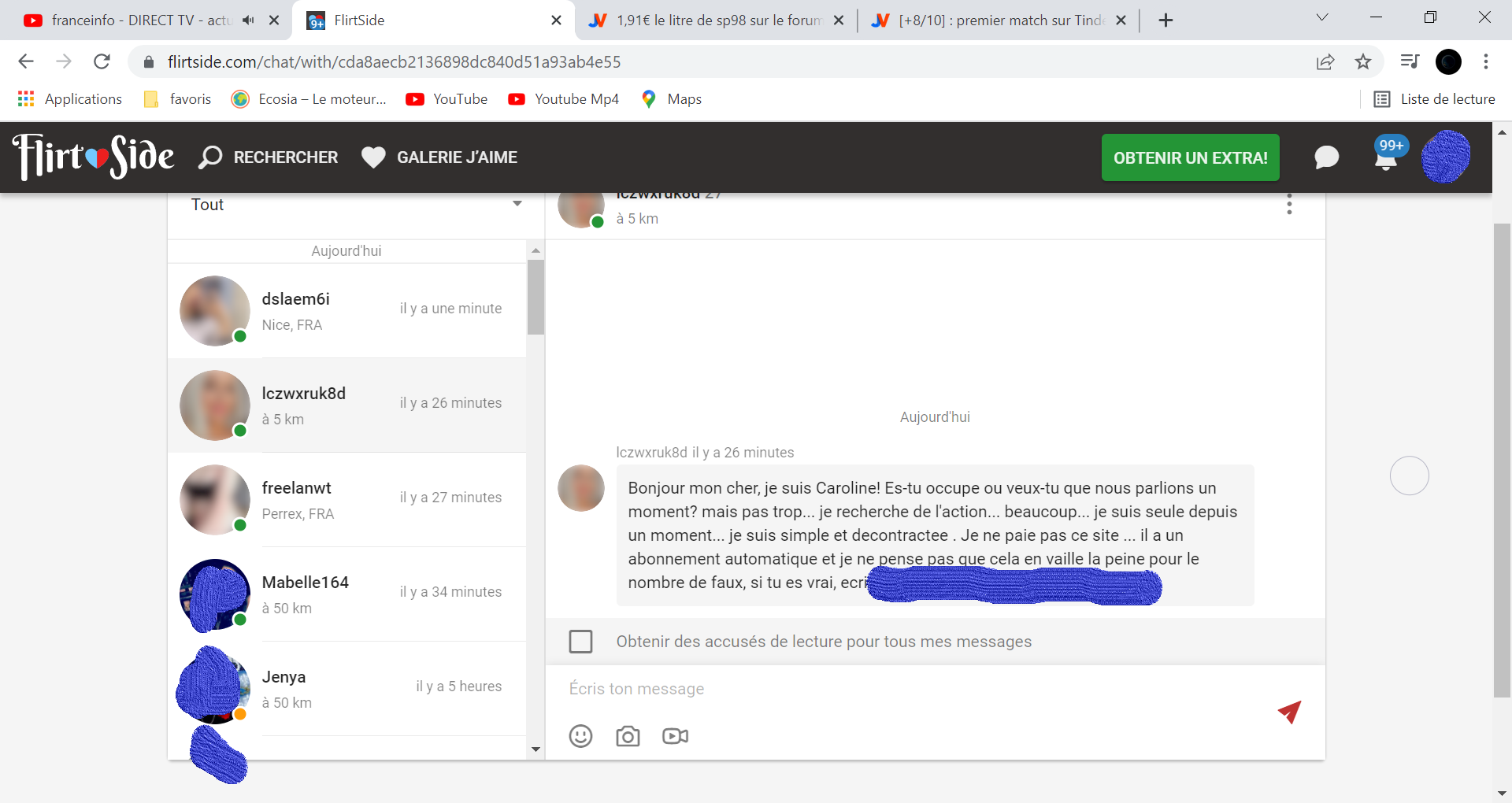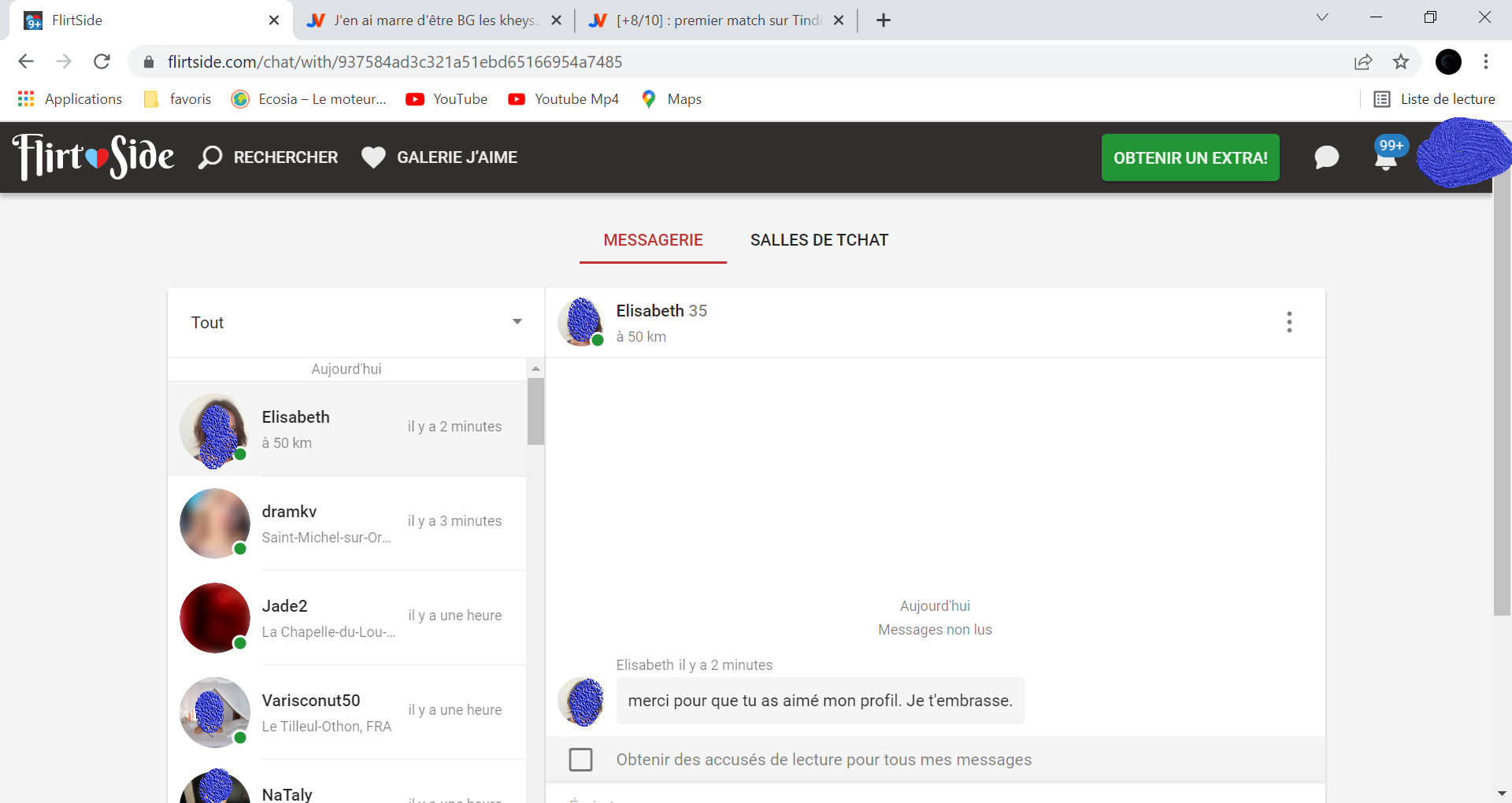j'ai 2-3 amoureuses qui consultent plusieurs fois sans parler