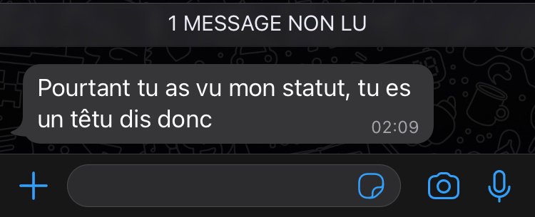 Donc tu va t'arrĂŞter jusque parce qu'elle a mis un statut de merde sur WhatsApp?