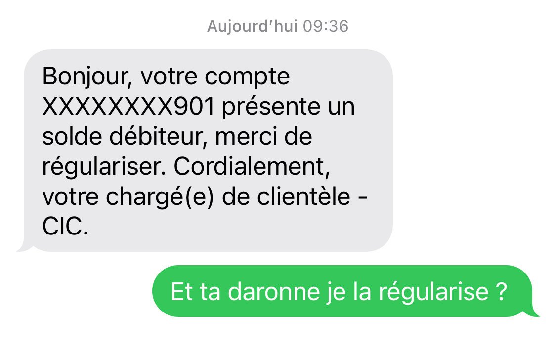 Et je reçois un messasge de ma banque mais genre un numéeo du type 38650 et du coup je répond ça