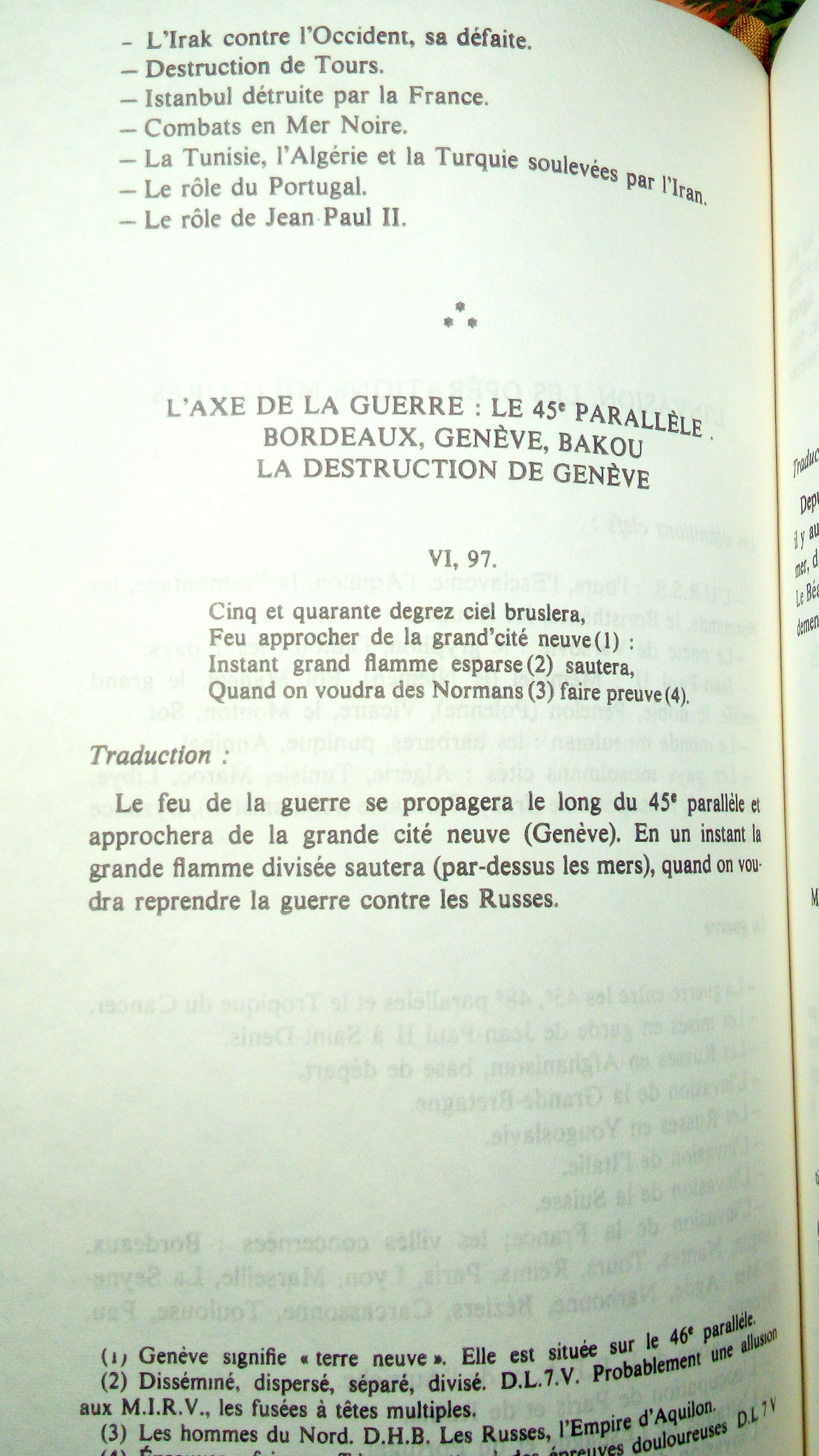 voici un extrait du livre de 1980 "Nostradamus, historien et prophète" de Jean Charles Fontbrune au sujet des prédictions de Nostradamus concernant la WW3 :