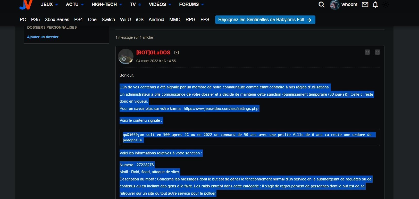 Le 04 mars 2022 à 16:32:17 RandomWWW a écrit :La moindre insulte et c'est le ban hein