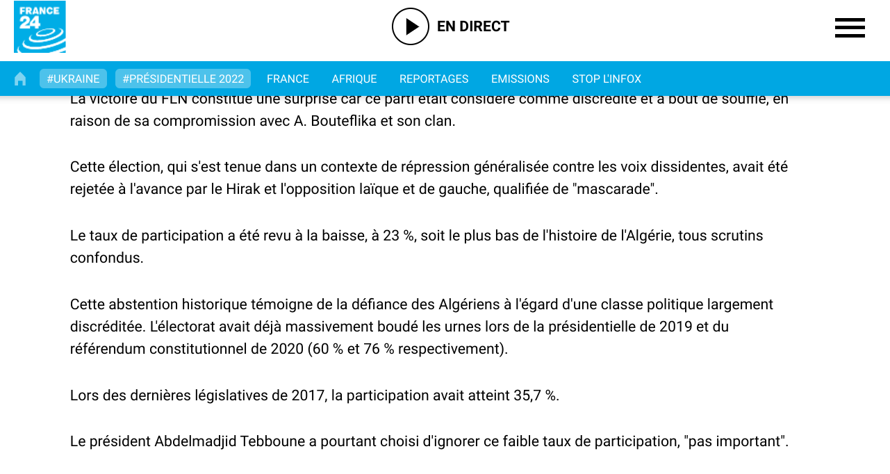 je remets pas en cause ton propos, je dis juste ; quand un regime est rejeté et n'a plus aucune credibilité, généralement les elections attirent personne et c'est un signe de future revolution.