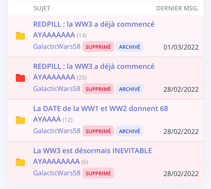Bordel un énième secondaire qui a 114 messages en 0 jour, tu tournes avec 3-4 pseudos par jour