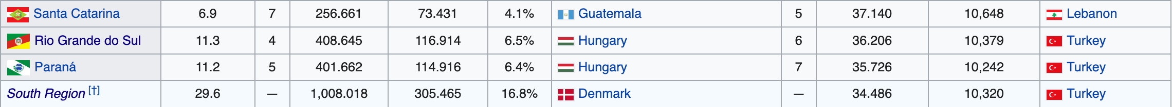 Le sud du Brésil n'est pas pauvre, le pib a beau être faible si le coût de la vie est plus bas ça revient au même le desco.