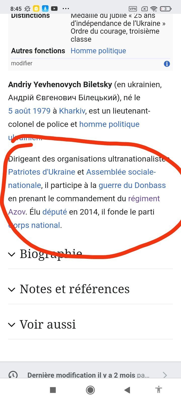C'est vrai que c'est mieux de soutenir des néo nazi qui sont implantés dans la politique ukrainienne ( sénateur , ministre de l'intérieur , chef de police ) dans l'armée aussi