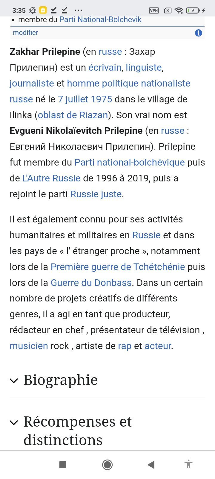 https://fr.wikipedia.org/wiki/Zakhar_Prilepine et lui le low IQ tu vas trouver quoi à dire ?est un écrivain, linguiste, journaliste et homme politique nationaliste russe né le 7 juillet 1975