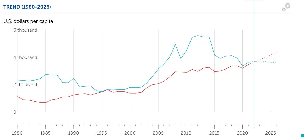 le déni des marocains qui ont un PIB qui se rapprochent de plus en plus de l'Algérien d'année en année ?