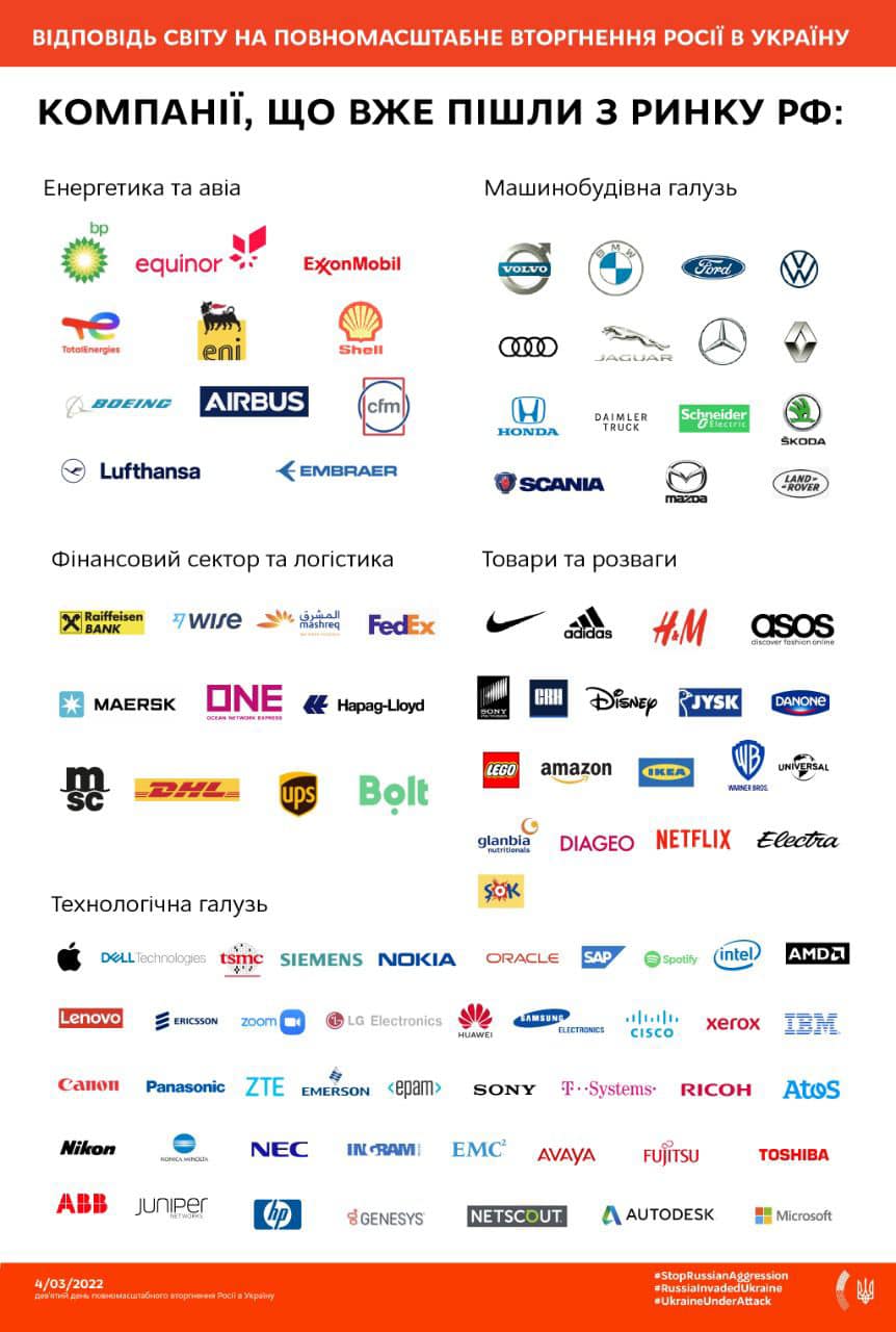 voici une parti des marques qui se barrent de russie