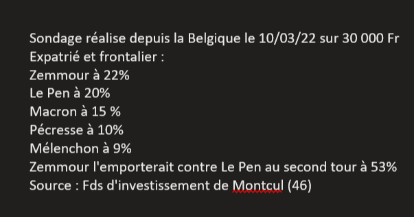 Prends pas tes rêves pour des réalités. Il était au coude-à-coude avec Le Pen, et seulement à 3% de Macron.