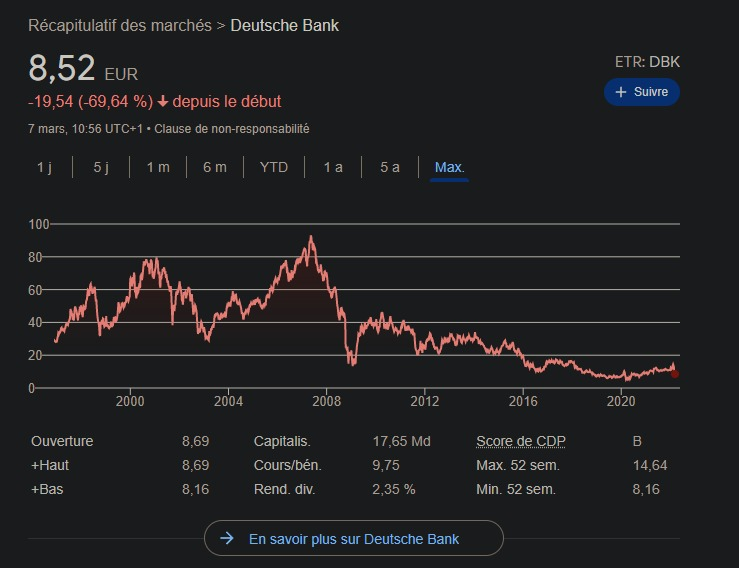https://www.capital.fr/entreprises-marches/deutsche-bank-doit-on-craindre-la-faillite-de-la-premiere-banque-europeenne-1344127 Personne ne semble prêt sur ce forum, depuis 2015 tout est CLAIR