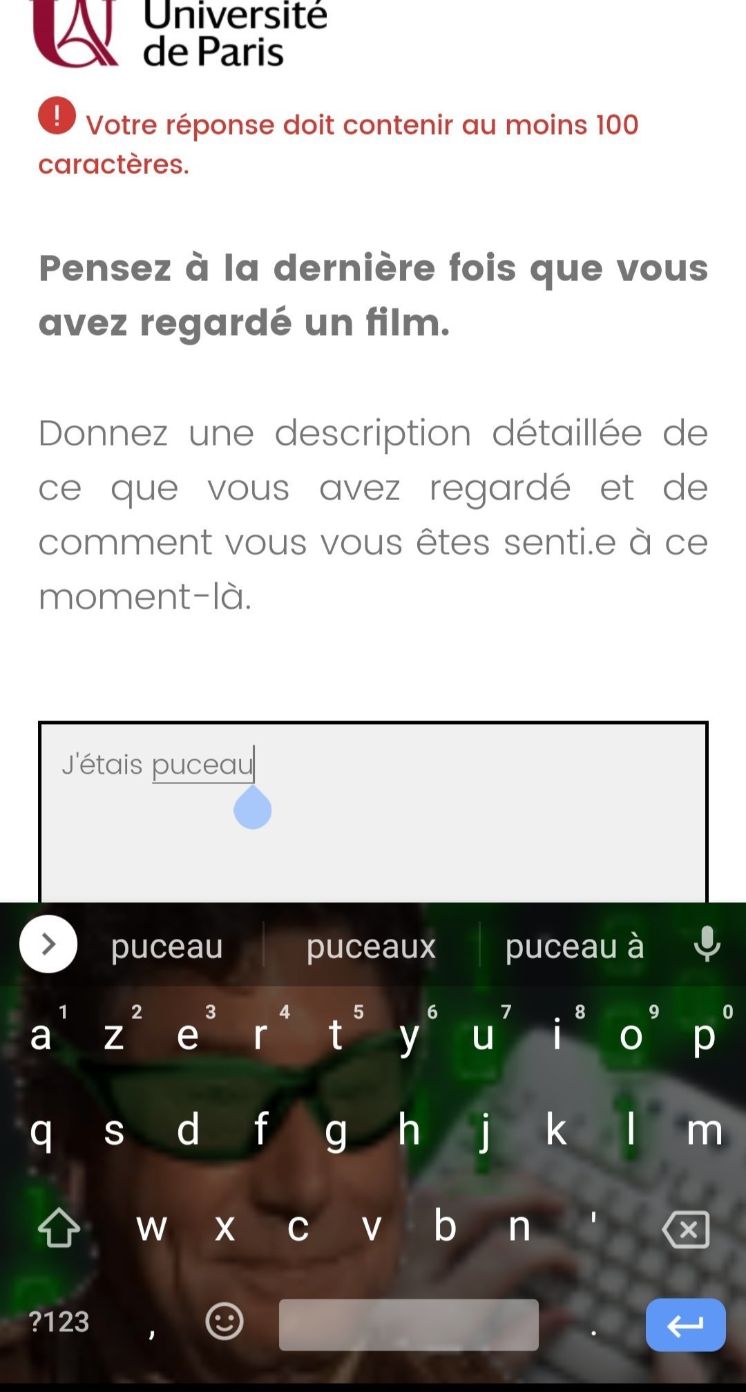 Vos réponses seront anonymes, répondez-y sérieusement s'il vous plaît