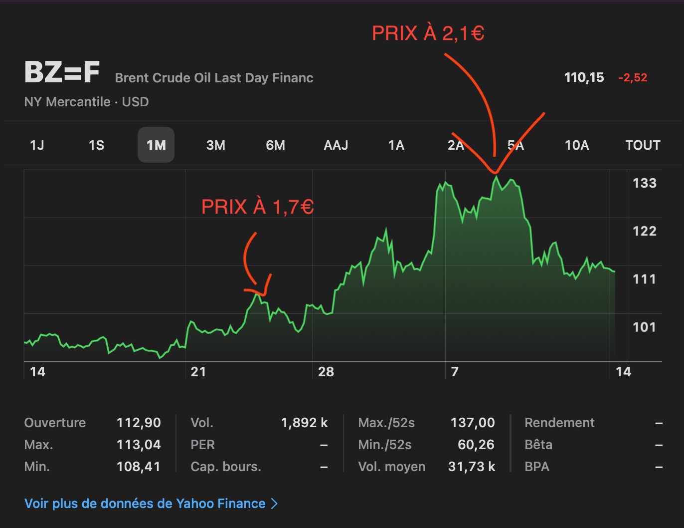 Quand le baril est monter en flèche, ils ont pas attendu les famoso 8-10 jours pour augmenter les prix à la pompe.