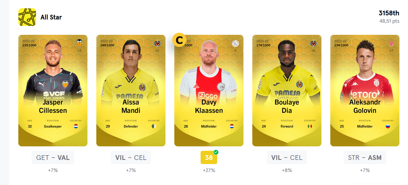 En gros, le but c'est de rassembler des joueurs dans une équipe de 5 qui feront des scores en fonction de leurs performances dans la semaines pour au final gagner des crypto (en ETH, la deuxième crypto derrière le bitcoin) ou d'autres joueurs.