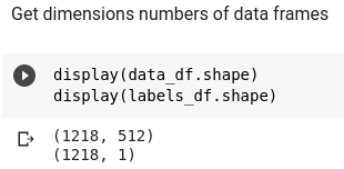 Donc 1218 pour les 2 fichiers dont le premier (données) = 512 caractéristiques (colonnes) et le deuxième (labels) = 1 colonne.